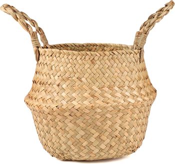 YULIN JIAFU Cesta tejida de algas marinas con asa-Macetas para plantas de interior, organizador de cesta de almacenamiento y picnic, cesta de jardín