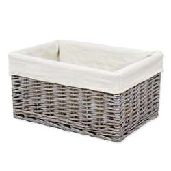 Yulin Jiafuグレーウォッシュウィッカー裏地付き収納バスケット
